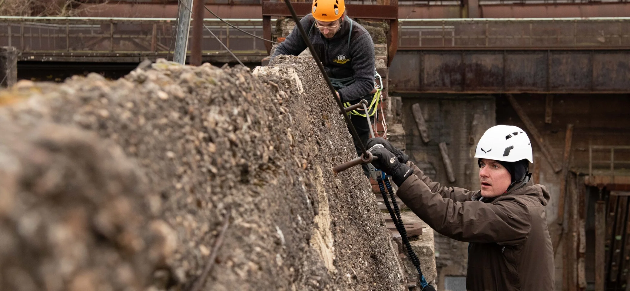 Unsere Sektoren 1 bis 10 befinden sich in den alten Möllerbunkern des Landschaftsparks. Hier finden sich überwiegend kurze, plattige Routen am Beton mit geschlagenen oder gebohrten Griffen. Zwischendurch finden sich aber natürlich auch Kunstgriffe und zum Teil überhängende Routen.